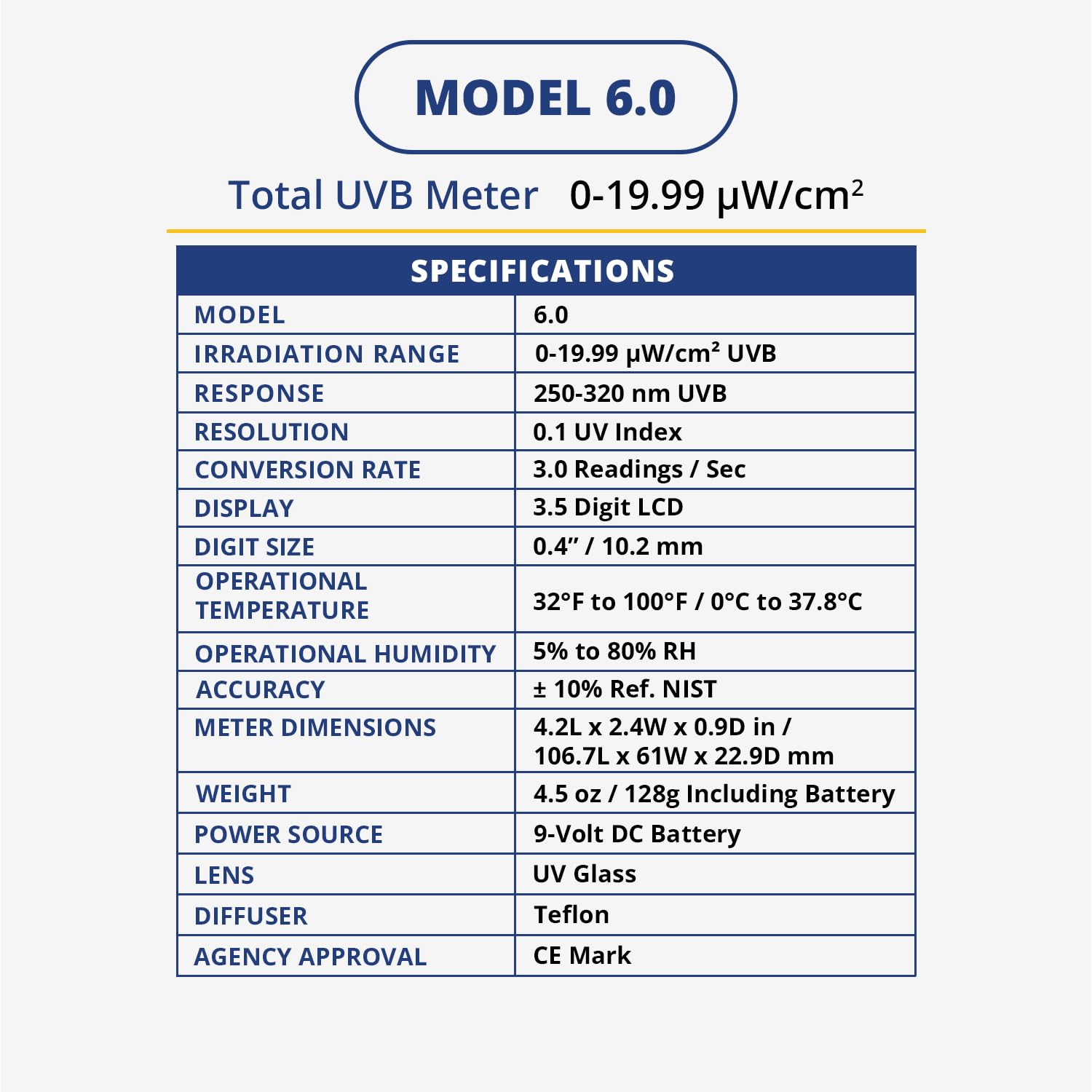 Solarmeter Model 6.0 – Standard UVB Light Meter for Lamp Testing, Phototherapy & Sunlight Monitoring