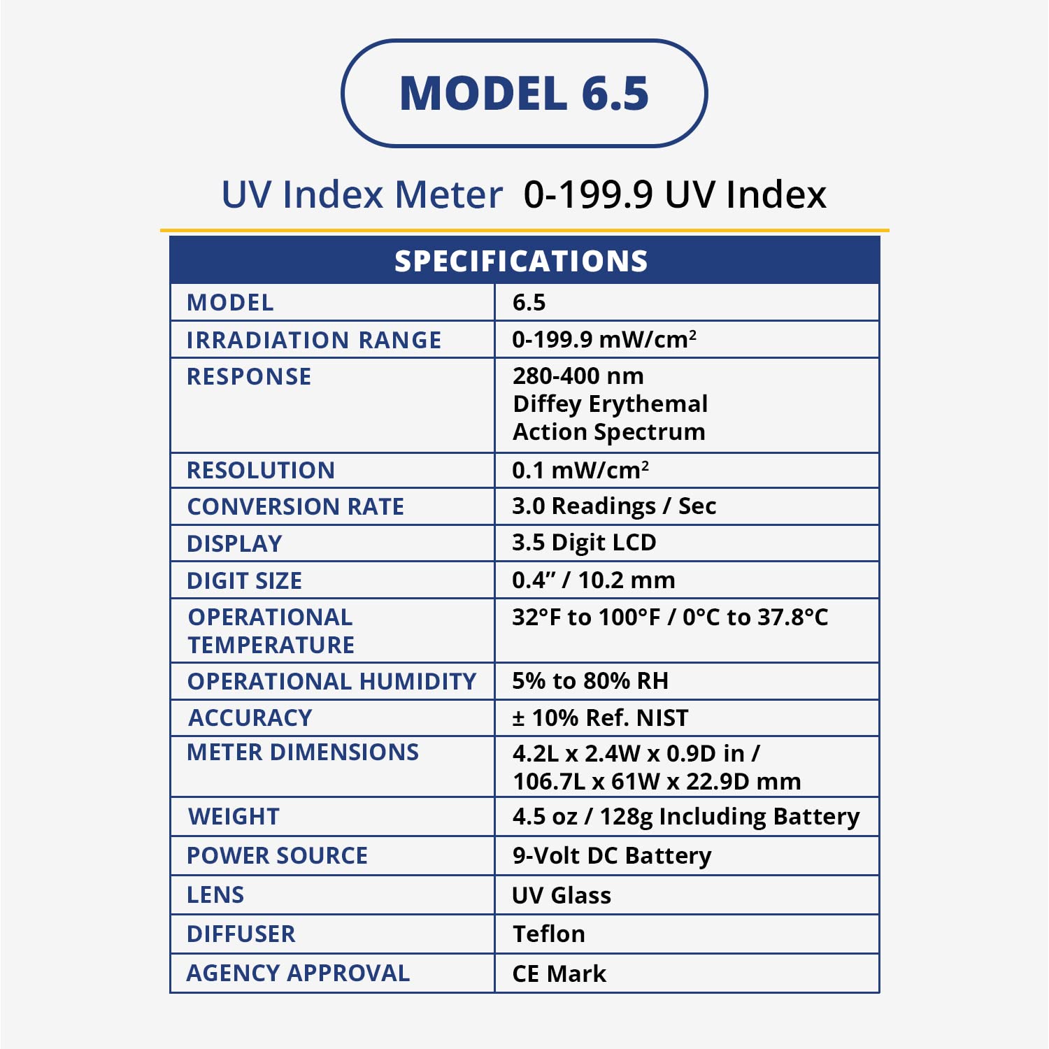 Solarmeter Model 6.5 – Handheld UV Index Meter for Accurate Ultraviolet Light Measurement, 280-400 nm, 0–199.9 UV Index, Made in USA