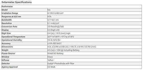Special-purpose bulbs degrade over time, reducing the amount of red light they emit and leading to diminished results. With the Solarmeter 9.6, you can easily track lamp performance and know exactly when it's time for replacement.